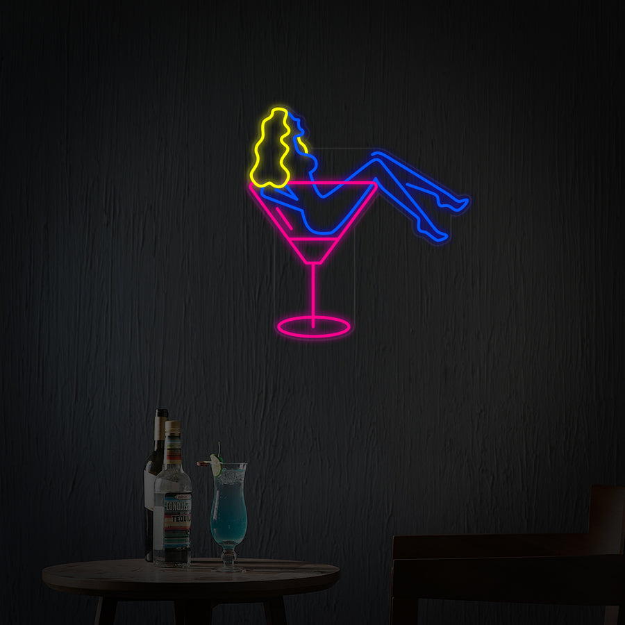 "Burlesque Nights Kvinne Og Cocktail" Neonskilt